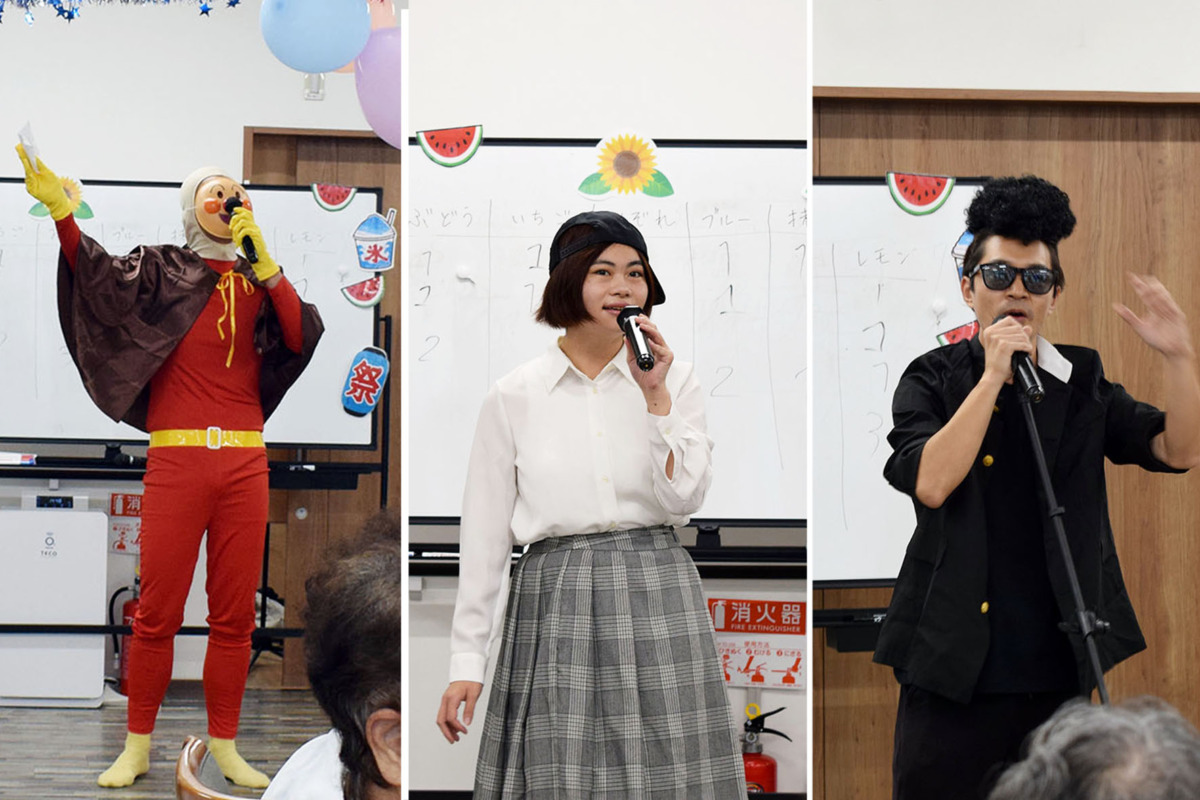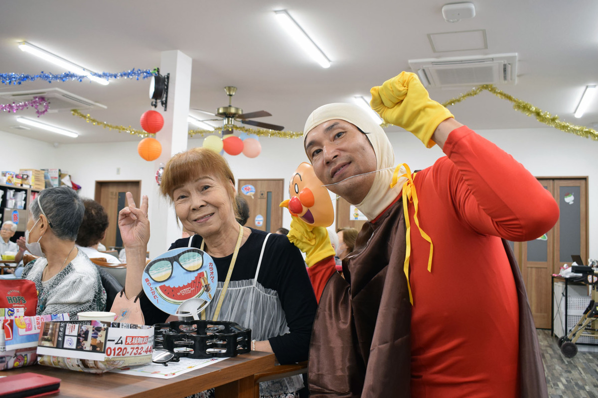 スタッフから皆さまへ歌とダンスのプレゼントでは、のっけから妙にスタイルの良いアンパンマンが登場して大笑いになりました!