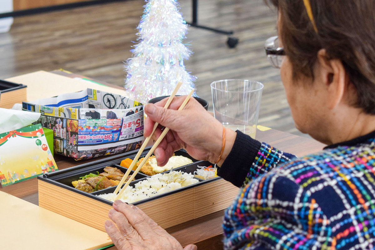 口腔体操を兼ねたクリスマスソングの合唱で盛り上がったあとはお待ちかねのランチ。